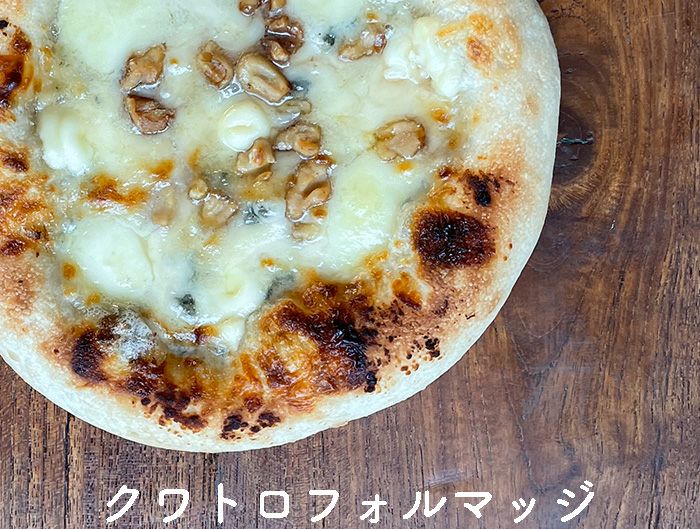 モッツァレラ・マスカルポーネ・ゴルゴンゾーラ・エダムの4種のチーズ、クルミとハチミツのアクセントの贅沢ピッツァ!