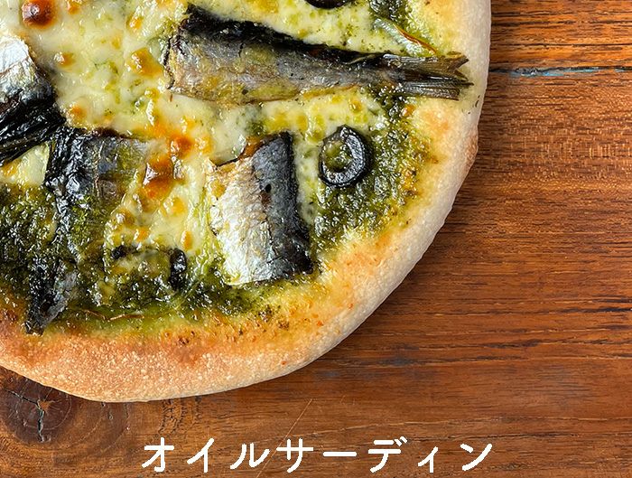 国内産いわしの「オイルサーディン」と風味豊かなパジルソースを使った大人の贅沢ピッツァ!ふっくらとした身のオイルサーディンはくせもなくお子様でも美味しくお召し上がり頂けます!