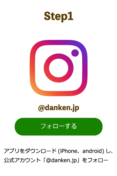 1. アプリをダウンロードして、公式アカウント「@danken.jp」をフォロー