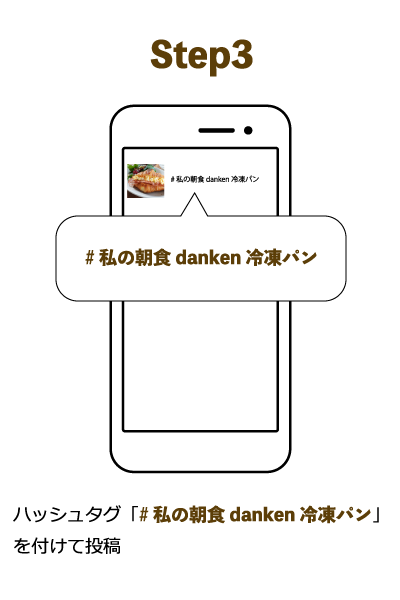 2. ハッシュタグ「#私の朝食danken冷凍パン」を付けて、皆様がdanken冷凍パンを朝食で活用している様子を投稿