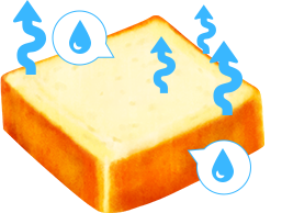パンの内部に含まれる水分が空気中に蒸発し、これがパンの硬さにつながります。